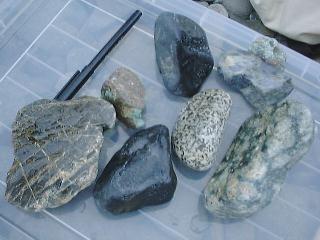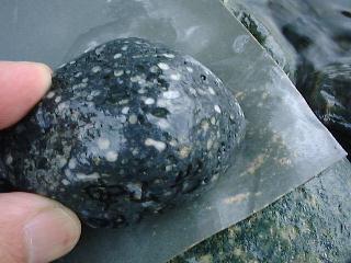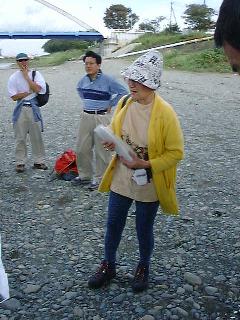 国立科学博物館地学研究部主任研究官の千葉とき子先生をお招きしての所外研修、「かわらの小石」に参加した。千葉先生の著書「かわらの小石の図鑑」(東海大学出版会)に紹介されているフィールドで、本に載っているのと同じ標本を手にしながら、岩石の鑑定法と起源について直伝を受けた。
