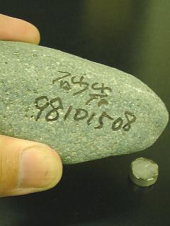 しかし、磁石を近づけてみるとその違いは一目瞭然。マフィックなドレライトは磁石に引かれるが、砂岩はネオジム磁石でもまるで感じない。千葉先生の鑑定の通りだった。これを一瞥しただけで瞬時に見分けるのだから、プロの目はすごいものだと思う。