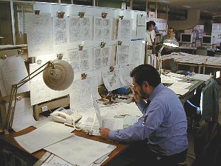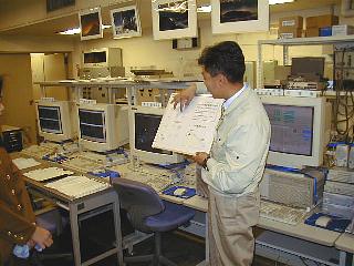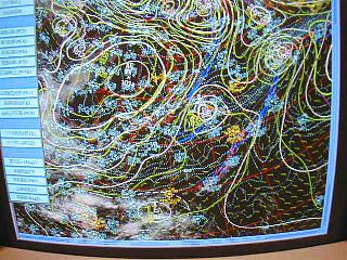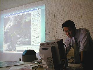 ウナギの寝床のような長ーい部屋の各所で、それぞれの担当官が当直で仕事をしている。予報は合議制ではなく、当直の一人の判断で出されるのだそうだ。責任重大だ。