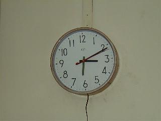 世界中の気象情報を扱うので、標準時は世界時UT。壁の時計には世界時を示す緑の針が余分についていた。