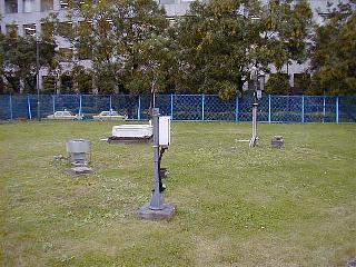 庁舎の外にある「露場」。東京管区気象台としての測候はここで行われる。ビルの谷間のこの芝生の空間が東京の気象を代表しているのだ。