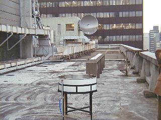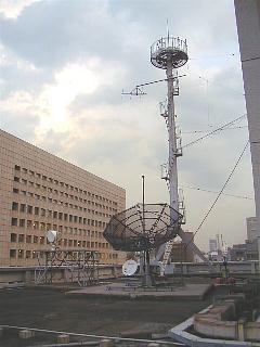 屋上には各種のアンテナが並ぶ。国内はもとより、全世界からの気象情報がここに集まってくるのだ。パラボラは衛星通信用だろうか。