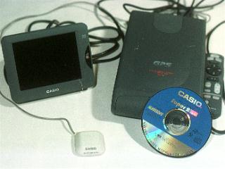 市販のカーナビは多種出回っていますが、その多くは写真左のように数値地図のデータをおさめたCD-ROMとそのドライブ装置(計算処理部を含む)、液晶ディスプレイ、受信アンテナからなります。