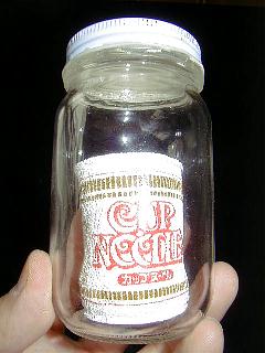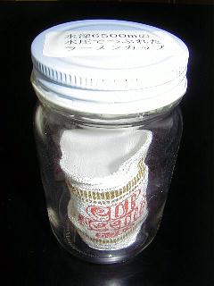 ジャムのビンに入るほど小さなラーメンカップ。もとはれっきとした標準サイズのラーメンカップでした。