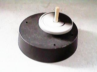 直径約5cmの大きなコマですので、静かに重々しくいつまでも回ります。ただ回しておくのでは飽きるので、上面にベンハムパターンを貼り付けてみました。それで「ベンハムの永久コマ」というわけ。
