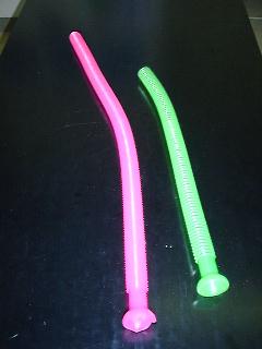 かつて、ハミングトップなどの名で一世を風靡した、振り回すと笛のように鳴る蛇腹のパイプ。見かけなくなって久しいが、中村理科からリバイバルで発売された。(SS77−1370、¥750) 原理は気柱共鳴だが、遠心力により生じた管内の気流が、蛇腹部分で渦振動を生じる条件や、回転を速めていくときに共鳴モードがより高次のものにジャンプするメカニズムなど、未解明の部分が多い。