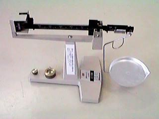 秤量150g、感量10mgの精密天秤だがなかなかスマートな作りで気に入っている。右の皿に物体を乗せ、アーム上のスライダーを動かしてラフにバランスをとったあと、アームの右側のバーニヤで精測する。