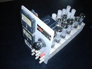 これは古式ゆかしい直流安定化電源装置。カバーをとると、中には今や貴重品の真空管がずらり。今時のものではないけれど、真空管は電子の存在を実感するにはいい素材でした。