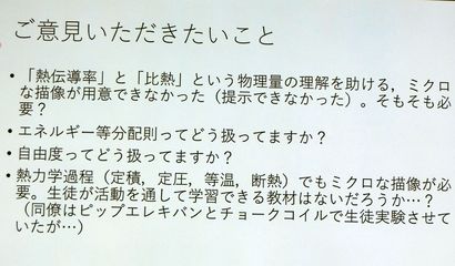 授業研究:ミクロな描像にこだわった熱力学授業 西村さんの発表