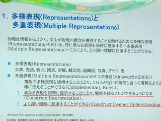 物理は情報を伝えたり、学生が物理の概念を獲得することを助けるために多様な表現(Representations)を用いる。特に異なる表現を同時に提示するー多重表現(Multiple