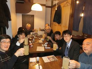 10名が参加してカンパーイ!新年初の例会は千葉県での開催。2年前の7月例会以来、二度目の会場だ。例会会場には会場校の校長先生まで足を運んでくださった。こういう自主研修活動に理解を示していただけることはとてもうれしい。