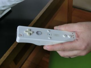 阿部さんにとって、慣性力は毎年きちんと説明ができている気がしない分野の一つだ。「見かけの力」と言うことも多く、間違った解釈をしているような生徒も見受けらる。2年生の加速度の分野でWiiリモコンの加速度センサーを紹介・実演したので、それを用いてパラボリックフライトの加速度の様子を実演している。右のグラフで3方向とも加速度がゼロを示している箇所が、リモコンが放物運動している区間だ。
