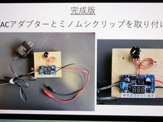 鈴木さんは発表の最後に「どちらの直流安定化電源についても、プラス(赤)とマイナス(黒)の導線の長さを同じにしてしまったため、ショートする恐れがある。作成する際は、長さに差をつけることを強くおすすめする。また、基板が剥き出しのため、こちらもショートを防ぐためにケースに入れたり、ビニールテープで巻いたりする等の工夫をすることをおすすめする。」とコメントした。
