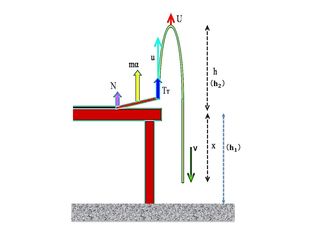 頂点から床までについて (U+v)2 +(h+x) dv/dt=(h+x)g