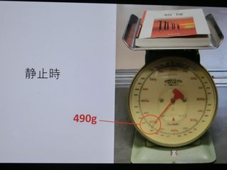 ちなみに、物理の教科書が490gであることに鈴木さんは感動した!これにより、加速度の計算がちょうど計算しやすい値になる!教科書出版社はそこまで考えていないだろうが…。